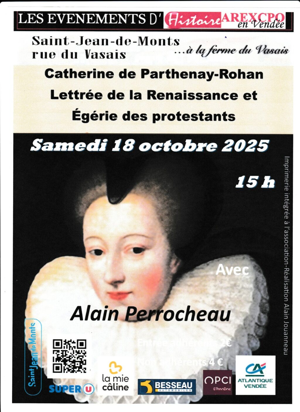 La section Histoire vous propose une conférence d’Alain PERROCHEAU sur « Catherine de Parthenay-Rohan, grande dame lettrée de la Renaissance et égérie des protestants » :