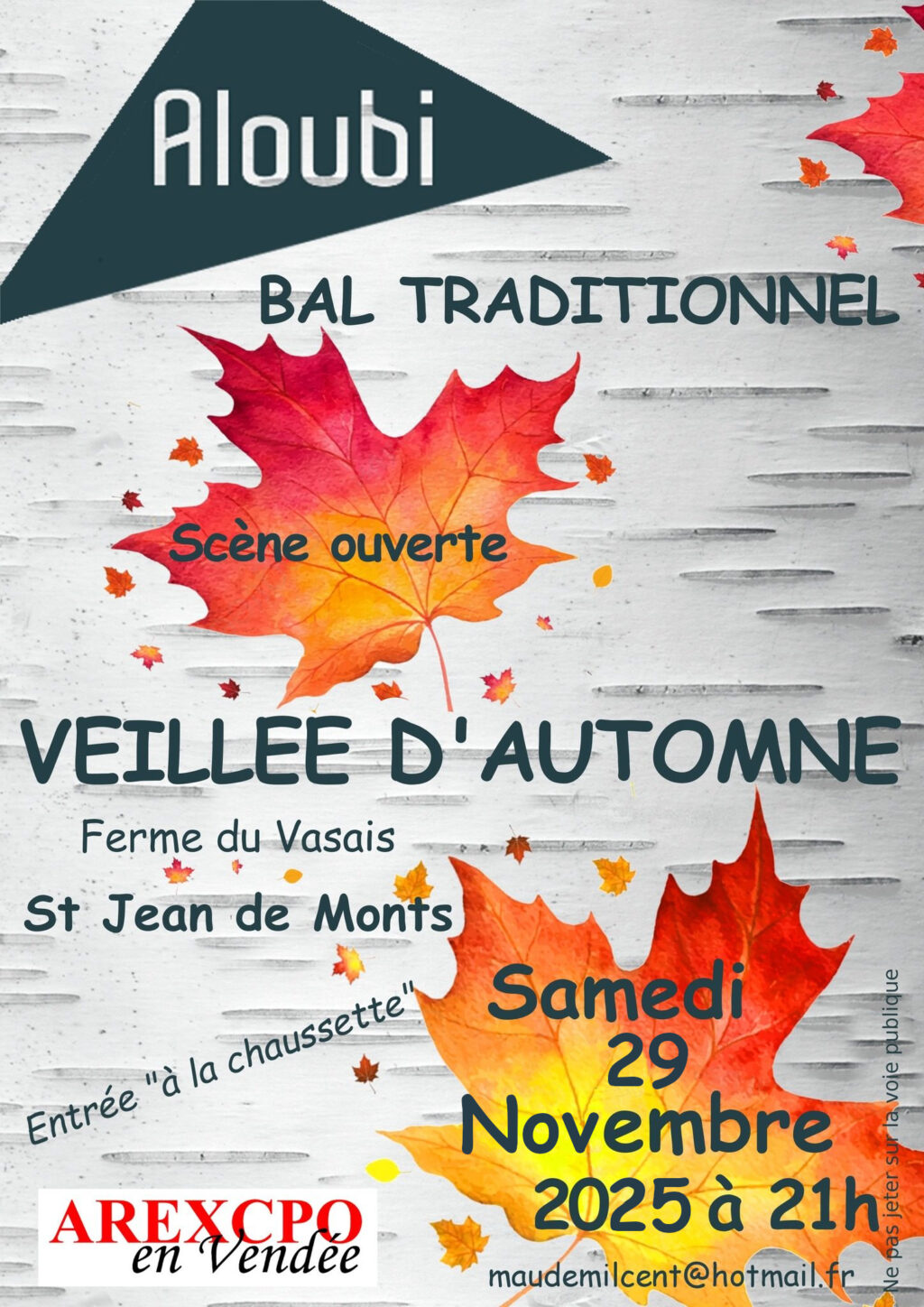 La Ferme du Vasais accueille le groupe de musique traditionnelle vendéen “ALOUBI“, le samedi 29 novembre 2025, à partir de 21h à la Ferme du Vasais, pour une Veillée d’Automne.